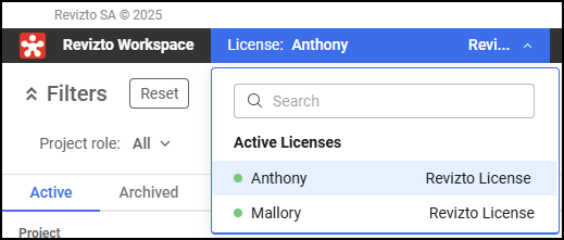 Falls Sie ein Mitglied mehrerer Lizenzen sind, achten Sie darauf, dass die korrekte Lizenz ausgewählt ist.