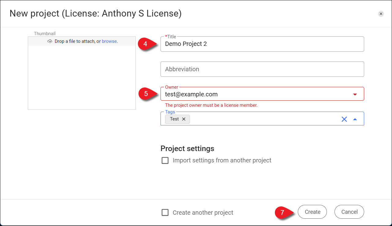- Geben Sie den Projekteigentümer ein oder wählen Sie ihn aus.