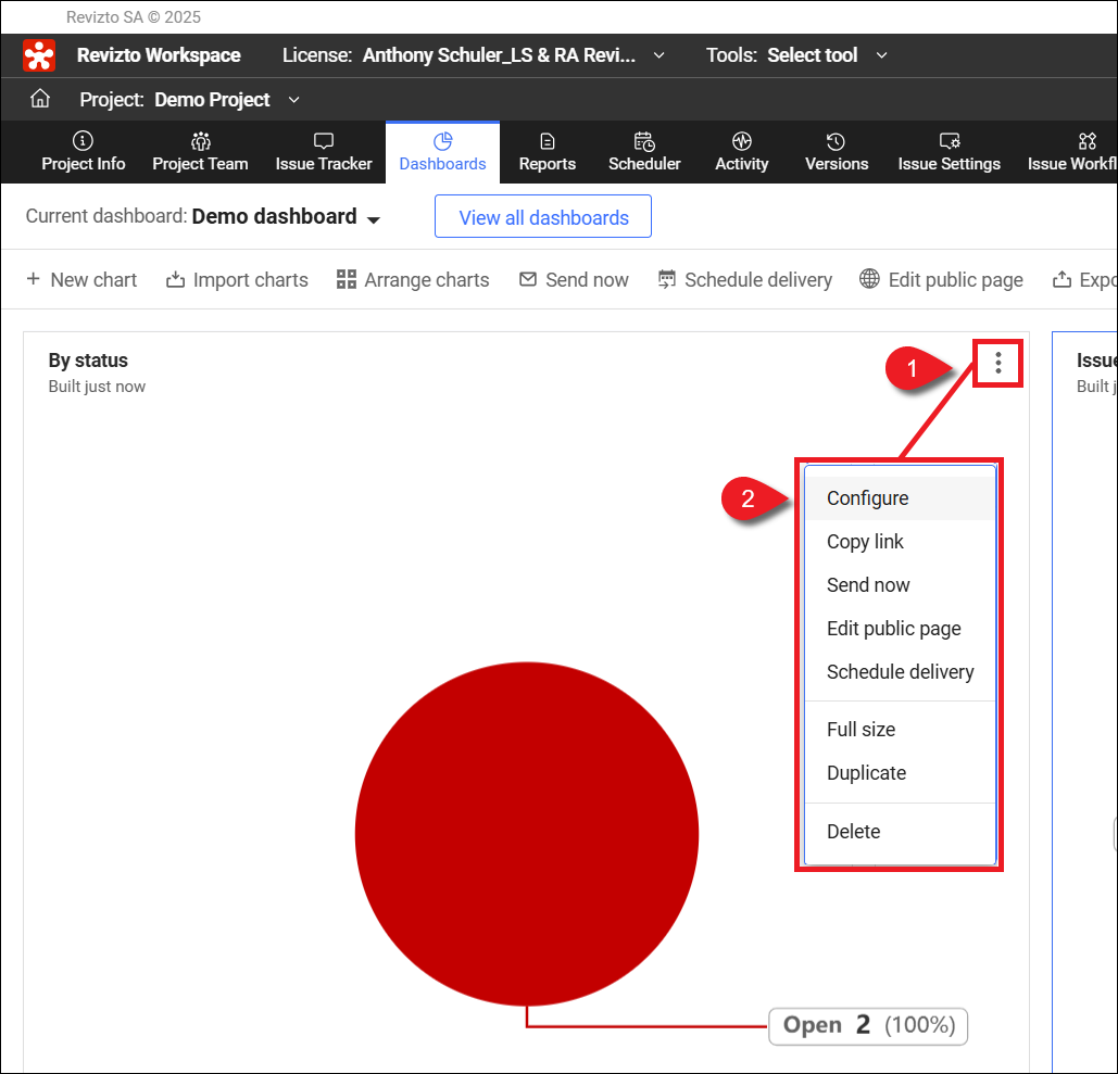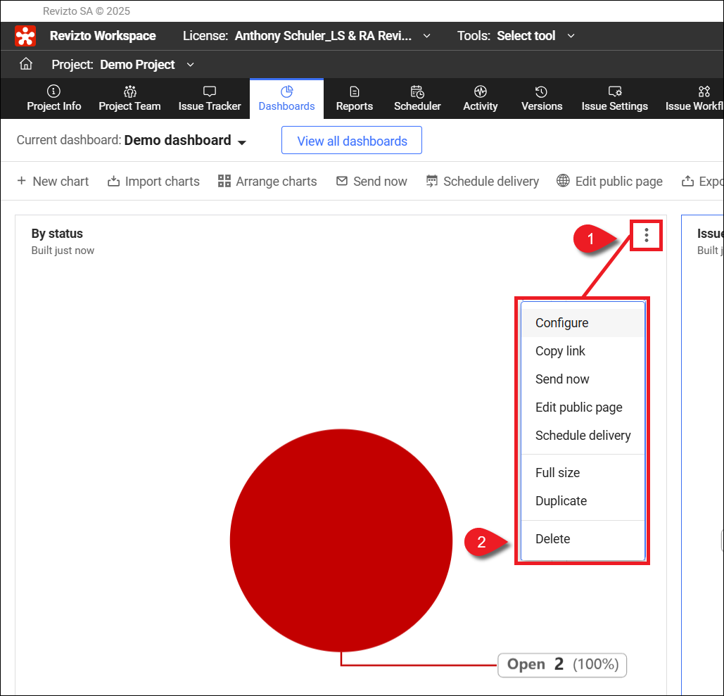 Das Verwalten von Diagrammen in Dashboards, die Ihnen nicht gehören, erfordert Zugriffsrechte als Projektadministrator. Wenn Sie ein Diagramm nicht verwalten können, wenden Sie sich an Ihren Projekt- oder Lizenzadministrator.