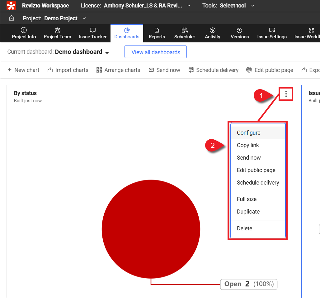 Alle Projektmitglieder können Diagramme in den Dashboards verwalten, die ihnen gehören.