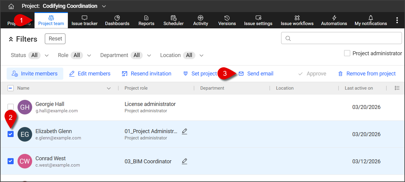 Project administrators can send emails to project members directly from Revizto Workspace.
