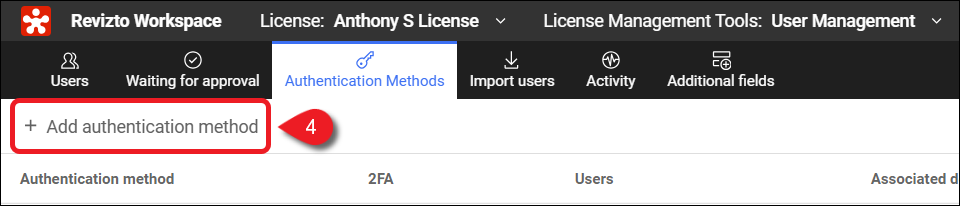 - Haga clic en Añadir método de autenticación para crear un nuevo método de autenticación.