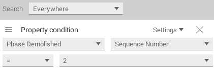 En la aplicación de Revizto, cree una búsqueda con condiciones basadas en propiedades relacionadas con las fases.