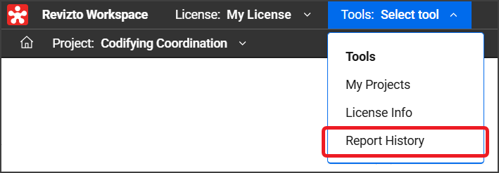 Abra el menú desplegable Herramientas y seleccione Historial de informes en Herramientas.