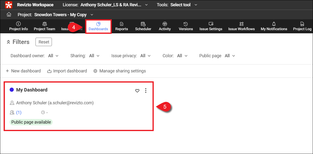 - Haga clic en Tableros en la barra de herramientas del proyecto.
