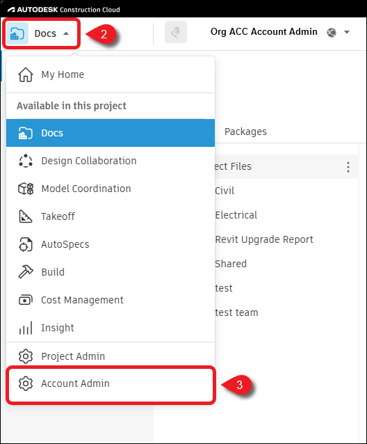 - Inicie sesión en ACC como administrador de la cuenta y abra su proyecto.