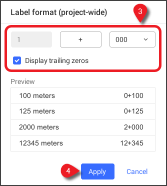 Ce paramètre détermine la façon dont les labels d’intervalles sont affichés sur les tracés dans tout le projet.