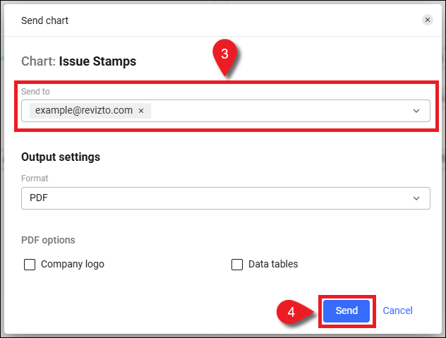 - Choisissez des membres du projet dans la boîte de sélection Envoyer à, ou saisissez les adresses e-mail des destinataires externes.