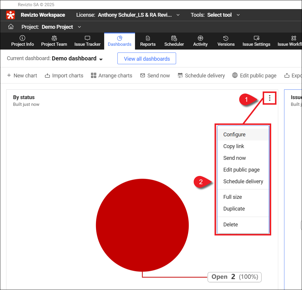 Les graphiques sont accessibles via les tableaux de bord dans Revizto Workspace.