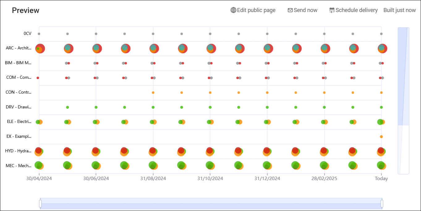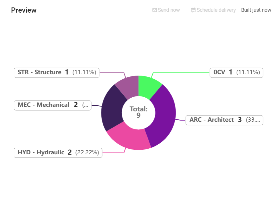 Les graphiques sont des composants des tableaux de bord et constituent un moyen simple d’analyser les données de votre projet Revizto. Vous pouvez définir ce qui est affiché et comment via les paramètres du graphique.