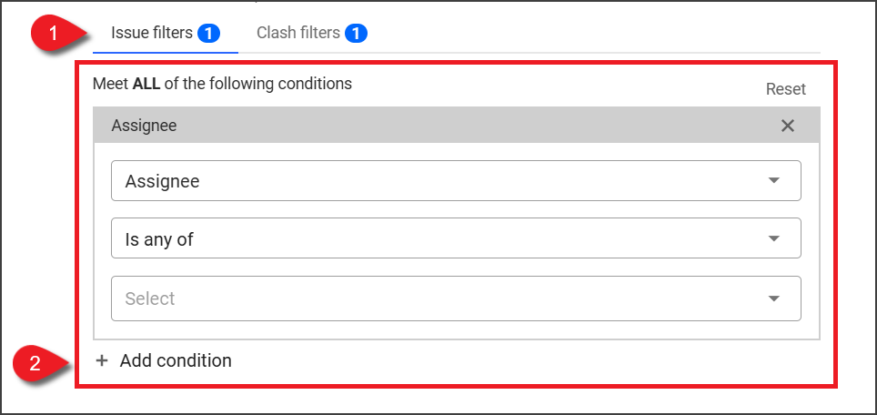 イシュー フィルターの条件フィールド