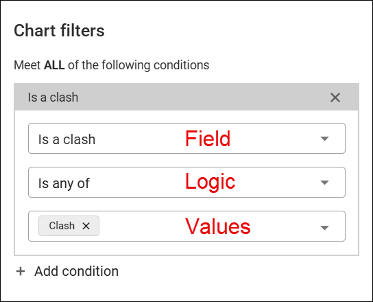 条件は、フィールド、フィルター ロジック、選択した値で構成されます。