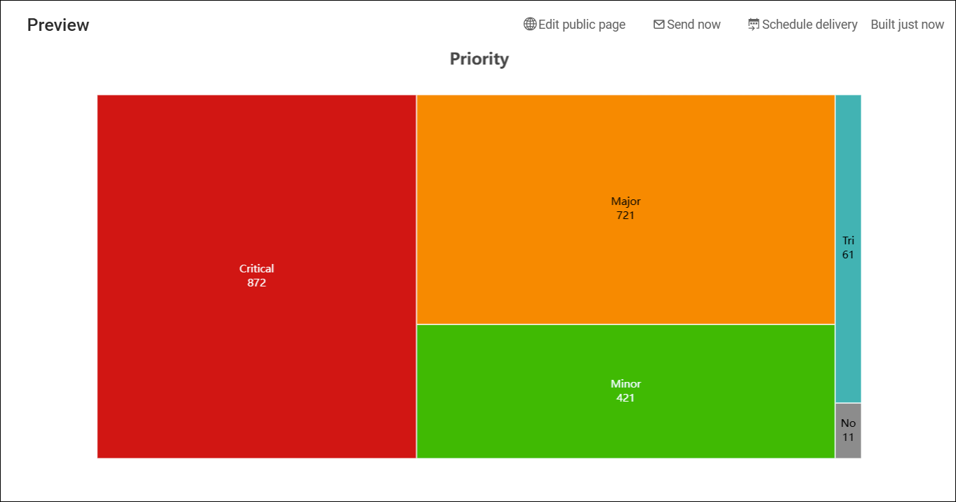 ツリーマップ グラフでは、サイズと階層によってデータが可視化されます。これは、グループ別にイシューの全体像を把握するのに有用です。