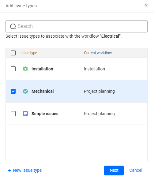- 从可用的问题类型列表中,选中要添加到工作流的类型旁边的复选框。