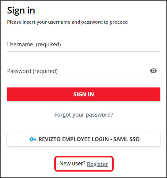 - 您也可以从 Revizto Academy 的主登录页面进入注册页面。