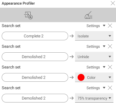 要查找属于特定阶段的对象,请基于这些属性创建搜索集。 然后可以应用外观模板来突出显示这些对象。