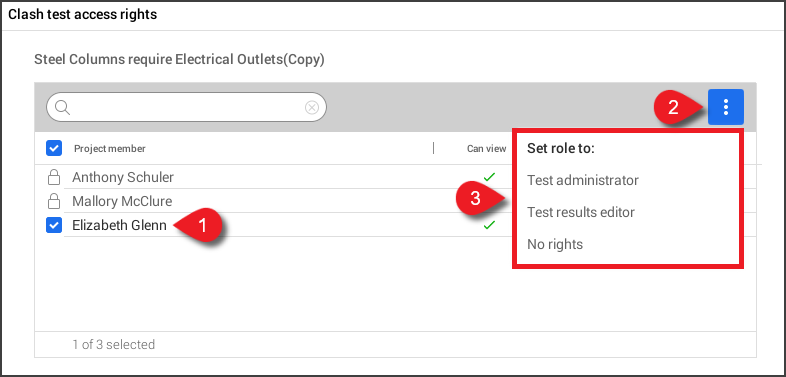 - 选择要编辑其访问权限的项目成员。 某些项目成员(如项目管理员)的碰撞检查访问权限无法更改。