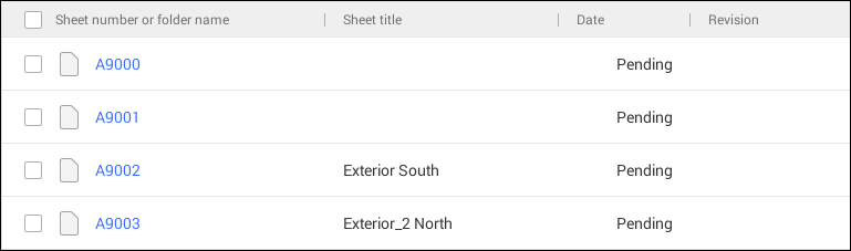 导入图纸后,其日期将设置为待处理。 同步项目后,它们会变为同步日期。